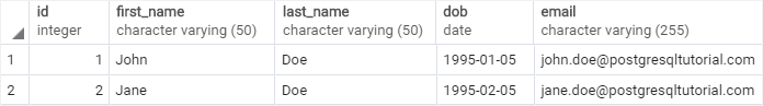 COPY 2It means that two rows have been copied. Let’s check the persons table.